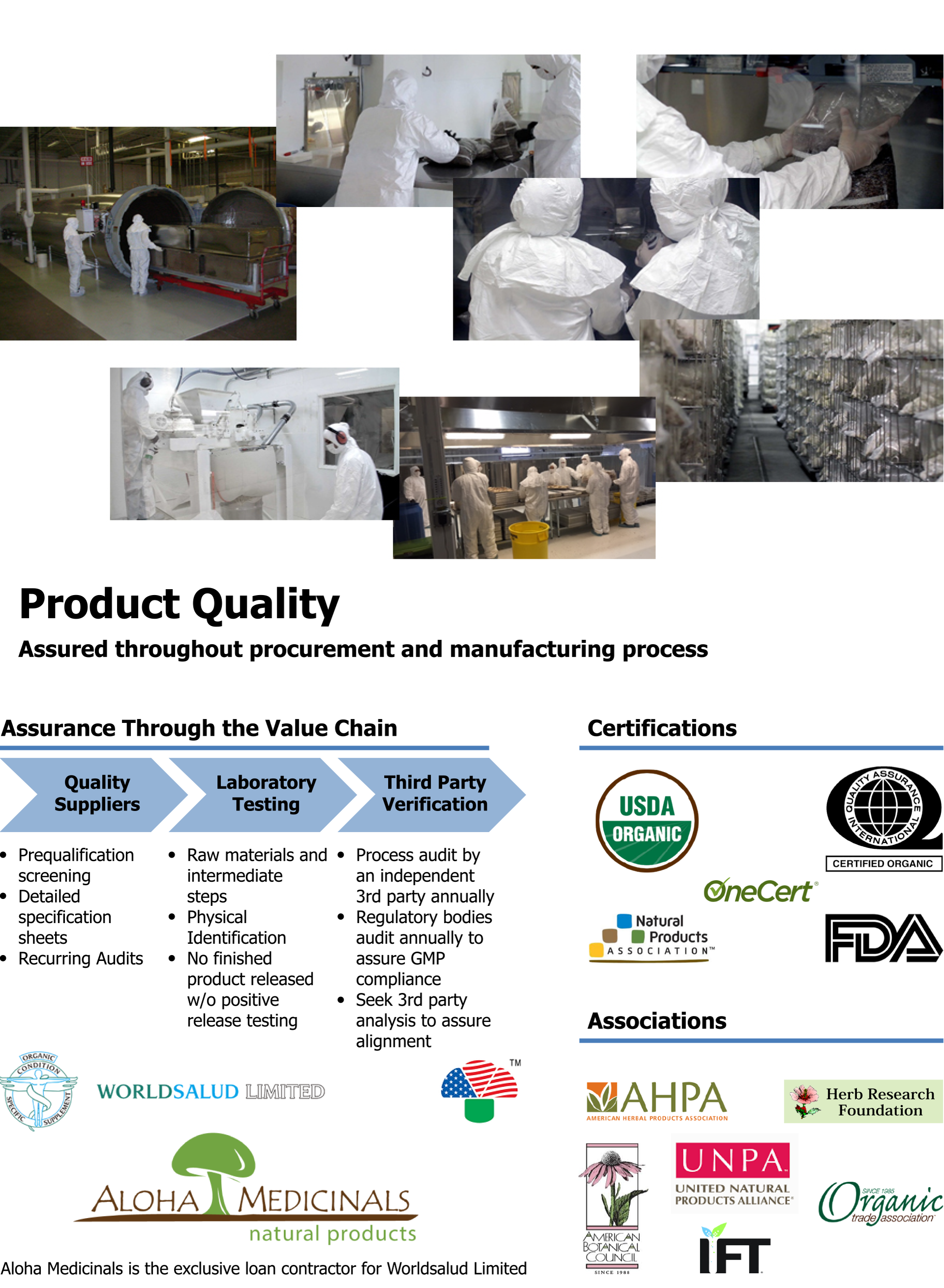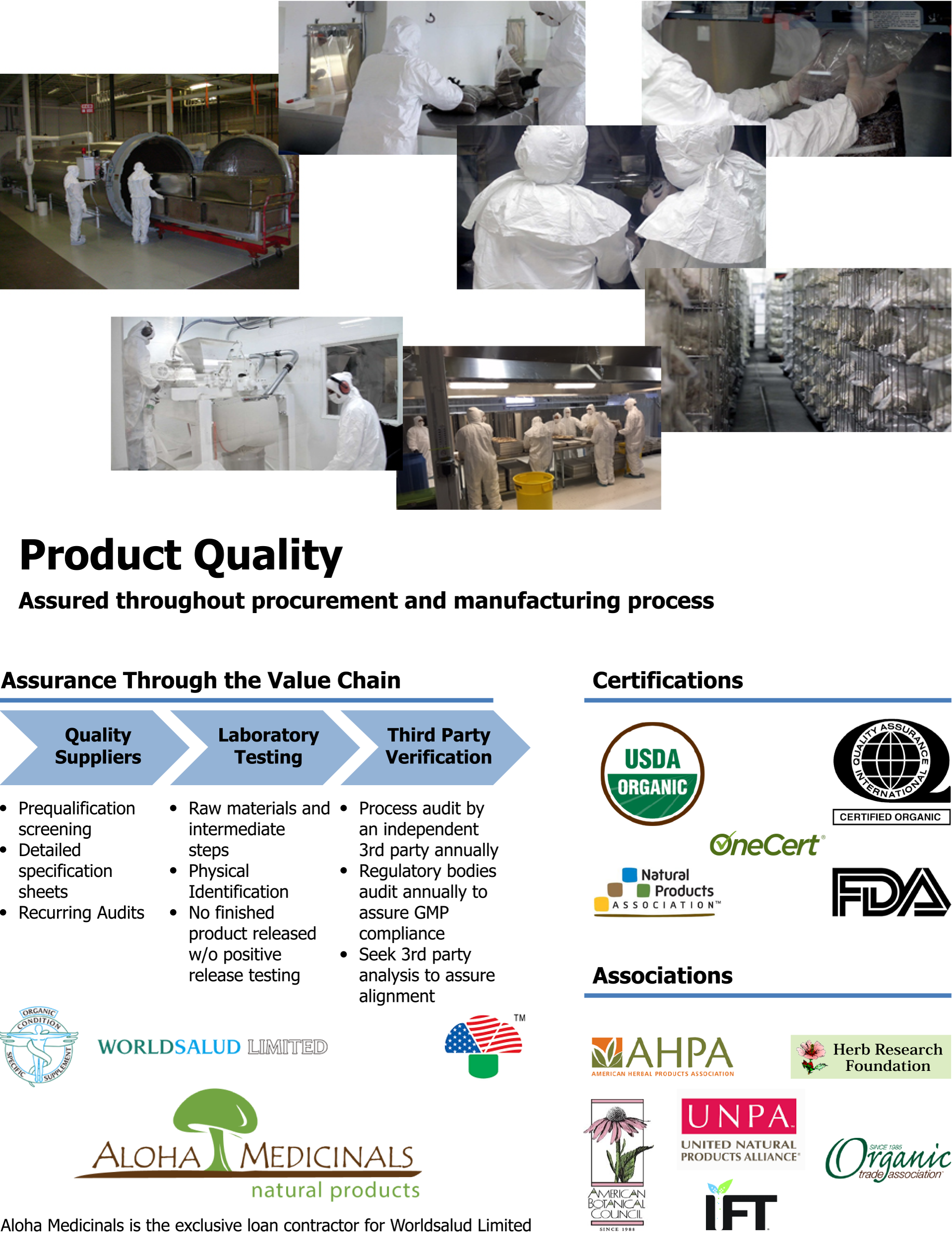 Aloha’s staff includes Mycologists, Microbiologists, Biochemists, Veterinary and Human Health Care Professionals from several fields. You can choose one of our proven formulas or, if you have your own formula in mind, we can manufacture it for you. We are pleased to work with you in developing your next product. We will manufacture any product to your specification! Please send us email with your questions to [email protected] or to [email protected]